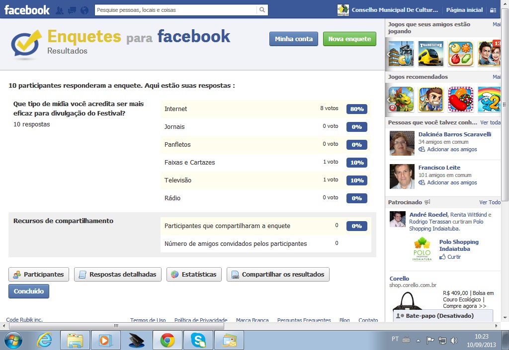 As Enquetes foram postadas na página do Conselho de Cultura no Facebook. Abaixo apresentamos os resultados: